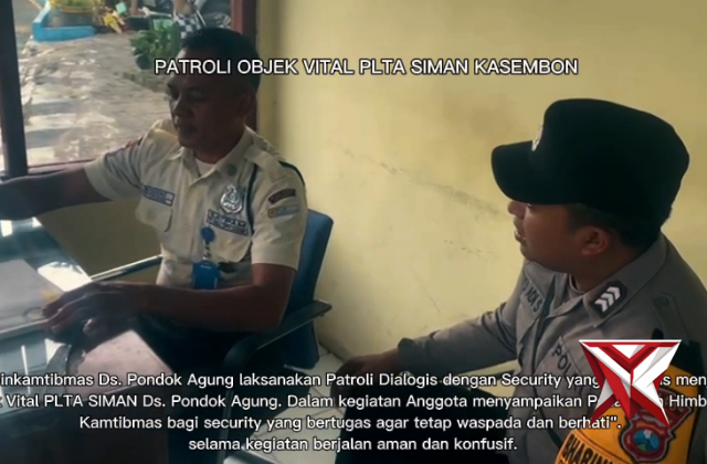 PATROLI OBJEK VITAL PLTA SIMAN KASEMBONNov 08, 2025 19:00 - Berita - 28 viewsBhabinkamtibmas Ds. Pondok Agung laksanakan Patroli Dialogis dengan Security yang bertugas menjaga Objek Vital PLTA SIMAN Ds. Pondok Agung. Dalam kegiatan Anggota menyampaikan Pesan dan Himbauan Kamtibmas bagi security yang bertugas agar tetap waspada d... -