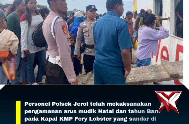 Personel Polsek Jerol mekaksanakan pengamanan arus mudik Natal dan tahun BaruDec 29, 2025 15:08 - Berita - 10 viewsPersonel Polsek Jerol mekaksanakan pengamanan arus mudik Natal dan tahun Baru pada Kapal KMP Fery Lobster yang sandar di Pelabuhan Serwatu Kecamatan Aru Selatan. -