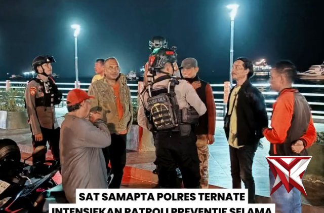 Sat Samapta Polres Ternate melalui Satgas Preventif Operasi Lilin Kieraha 2025Jan 01, 2026 15:02 - Berita - 10 viewsSat Samapta Polres Ternate melalui Satgas Preventif Operasi Lilin Kieraha 2025 terus mengintensifkan kegiatan patroli kewilayahan guna memastikan situasi keamanan dan ketertiban masyarakat (Kamtibmas) di wilayah Kota Ternate tetap aman, damai, dan kondusi... -