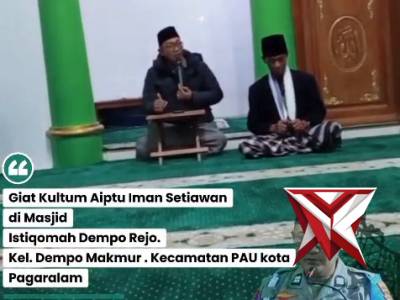 Giat Kultum Personil Polres Pagar Alam Aiptu Iman Setiawan di Masjid Istiqomah Dempo Rejo Kota PagaMar 05, 2026 04:44 - Berita - 3 viewsGiat Kultum Personil Polres Pagar Alam Aiptu Iman Setiawan di Masjid Istiqomah Dempo Rejo Kota Pagar Alam