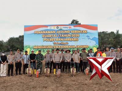 Penanaman Jagung Serentak Kuartal I Tahun 2026 Polres Banjarbaru.Mar 09, 2026 01:53 - Berita - 5 viewsPenanaman Jagung Serentak Kuartal I Tahun 2026 Polres Banjarbaru. swasembadapangan ketahananpangan polridukungketahananpangan Poldakalsel polresbanjarbaru humaspolresbanjarbaru -