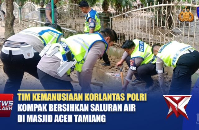 TIM KEMANUSIAAN KORLANTAS POLRI KOMPAK BERSIHKAN SALURAN AIR DI MASJID ACEH TAMIANG | NTMC POLRIDec 29, 2025 15:03 - Berita - 8 views#NewsFlashNTMCPolri #newsflash Pasca banjir di kabupaten Aceh Tamiang, tim kemanusiaan korlantas polri turun langsung ke lokasi untuk membersihkan saluran air dan lingkungan masjid. Aksi sosial ini dipimpin Ka induk PJR Cikampek Kompol Sandy Titah Nug... -