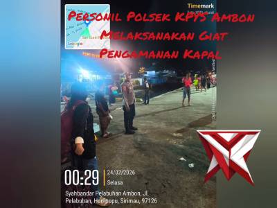 Polsek KPYS Ambon - PoliceTubeFeb 24, 2026 07:48 - Berita - 11 viewsPersonil Polsek KPYS Ambon Melaksanakan Giat Pengamanan Kapal