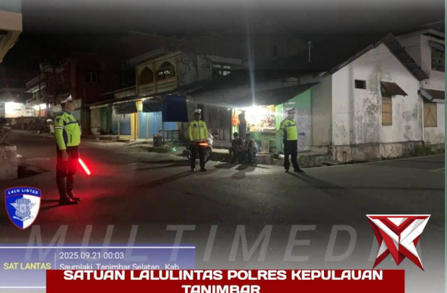 Satuan lalulintas polres Kepulauan Tanimbar laksanakanNov 09, 2025 15:35 - Berita - 38 viewsPengaturan di malam hari antisipasi aksi balap liar -