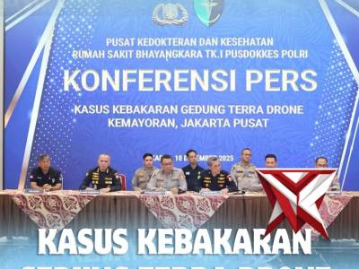 KONFERENSI PERS KASUS KEBAKARAN GEDUNG TERRA DRONE KEMAYORAN, JAKARTA PUSAT - PoliceTubeFeb 22, 2026 17:13 - Berita - 11 viewsTim DVI Polri kembali mengumumkan perkembangan terbaru pasca-kebakaran Gedung Terra Drone, Jakarta Pusat. Per Rabu (10/12), sebanyak 7 jenazah baru berhasil diidentifikasi, menambah total korban teridentifikasi menjadi 10 orang. Kepala RS Bhayangkara TK... -
