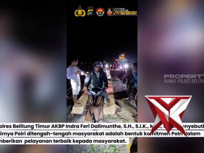 Polres Belitung Timur Gerak Cepat Bantu Warga Atasi Jembatan Putus di Desa Aik RuakFeb 25, 2026 02:30 - Berita - 8 viewsPolres Belitung Timur Gerak Cepat Bantu Warga Atasi Jembatan Putus di Desa Aik Ruak Kab. Belitung Timur.Tampak Anggota Sat Sampata & Sat Lantas hingga Bhabinkamtibmas Desa Aik Ruak Polres Belitung Timur melaksanakan pengamanan dan pengaturan arus lalu... -