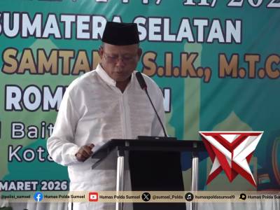 Safari Ramadhan, Wakapolda Sumsel Pererat Silaturahmi dan Salurkan Bansos di Kota Prabumulih PRABUMMar 04, 2026 18:34 - Berita - 5 viewsSafari Ramadhan, Wakapolda Sumsel Pererat Silaturahmi dan Salurkan Bansos di Kota Prabumulih PRABUMULIH – Wakil Kepala Kepolisian Daerah Sumatera Selatan (Wakapolda Sumsel) melaksanakan kegiatan Safari Ramadhan di Masjid Baiturrahman, Kelurahan Cambai, K... -