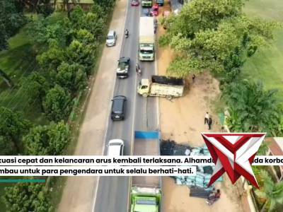 RESPON CEPAT POLRES BANYUASIN TANGANI LAKA LANTAS TUNGGAL DI JALINTIM KM. 22 - PoliceTubeFeb 14, 2026 06:32 - Berita - 21 viewsPada hari Kamis sekira pukul 06.30 WIB, telah terjadi laka lantas tunggal di Jalan Lintas Timur Palembang–Jambi KM 21 Desa Mainan, Kecamatan Sembawa, Kabupaten Banyuasin. Kendaraan Truck Canter No. Pol. BH 8211 ST bermuatan bongkahan arang kering melaju d... -