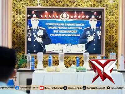 Kapolda Sumsel Pimpin Pemusnahan Barang Bukti, Tegaskan Komitmen Berantas Penyalahgunaan dan PeredarFeb 25, 2026 07:15 - Berita - 9 viewsKapolda Sumsel Pimpin Pemusnahan Barang Bukti, Tegaskan Komitmen Berantas Penyalahgunaan dan Peredaran Gelap Narkotika Palembang - Komitmen pemberantasan peredaran dan penyalahgunaan narkotika di Sumatera Selatan terus digencarkan secara masif dan berkel... -