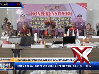 Sindikat pemalsu Dokumen kendaraan lintas Provinsi berhasil diungkap Polda Kalsel - PoliceTubeFeb 21, 2026 17:39 - Berita - 13 viewsPolda Kalsel Sita 20.000 berkas dan 20 mobil bodong dari sindikat pemalsu dokumen kendaraan lintas Provinsi -
