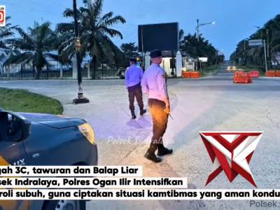 Kapolsek Indralaya AKP Junardi, SH, MAP berkomitmen untuk terus meningkatkan kegiatan patroli rutin...Feb 25, 2026 12:43 - Berita - 10 viewsGuna menjaga keamanan dan ketertiban masyarakat (kamtibmas) tetap kondusif, jajaran Polsek Indralaya Intensifkan kegiatan patroli subuh bulan Ramadhan. Patroli subuh difokuskan pada upaya antisipasi berbagai potensi gangguan kamtibmas, seperti 3C, balap... -