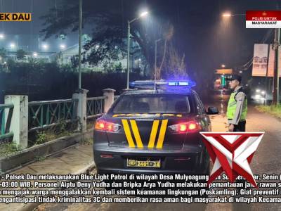 BIRUKAN MALAM, JAGA KONDUSIVITAS DAU! ??? - PoliceTubeFeb 10, 2026 10:34 - Berita - 27 viewsBIRUKAN MALAM, JAGA KONDUSIVITAS DAU! ??? Senin dini hari (09/02), personel Polsek Dau (Aiptu Deny Yudha & Bripka Arya Yudha) kembali melaksanakan Blue Light Patrol di wilayah Desa Mulyoagung dan Desa Sumbersekar. ? Fokus Utama Malam Ini: ? Cegah Kr... -