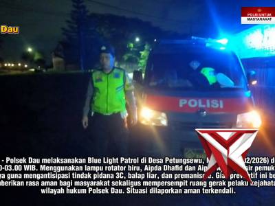 BIRUKAN MALAM, AMANKAN LINGKUNGAN! ??? - PoliceTubeFeb 09, 2026 09:21 - Berita - 22 viewsBIRUKAN MALAM, AMANKAN LINGKUNGAN! ??? Minggu dini hari (08/02), personel Polsek Dau (Aipda Dhafid & Aipda Aji) melaksanakan Blue Light Patrol di kawasan Desa Petungsewu. Kegiatan ini merupakan upaya nyata Polri dalam menghadirkan rasa aman saat warg... -
