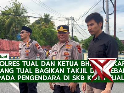 KAPOLRES TUAL DAN KETUA BHAYANGKARI CABANG TUAL BAGIKAN TAKJIL DAN SEBAKO KEPADA PENGENDARA DI SKB K...Mar 04, 2026 16:31 - Berita - 6 viewsKAPOLRES TUAL DAN KETUA BHAYANGKARI CABANG TUAL BAGIKAN TAKJIL DAN SEBAKO KEPADA PENGENDARA DI SKB KOTA TUAL TUAL, 3 MARET 2026 – Kapolres Tual AKBP Whansi Des Asmoro, S.H., S.I.K., dan Ketua Bhayangkari Cabang Tual, Wakapolres Tual dan Para Pju Polres... -