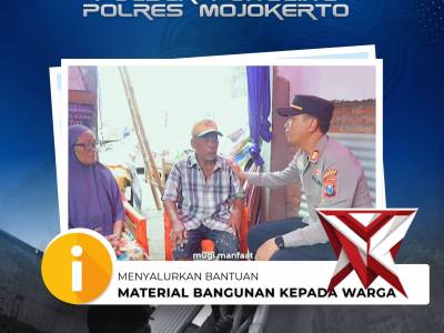 Polres Mojokerto Salurkan Bantuan Pascabencana Puting Beliung - PoliceTubeFeb 05, 2026 23:12 - Berita - 30 viewsRabu, 4 Februari 2026, Polres Mojokerto melalui Polsek Pungging di bawah pimpinan AKP Selimat, S.H., M.H menyalurkan bantuan material bangunan kepada warga yang terdampak bencana angin puting beliung. Kegiatan ini merupakan wujud kepedulian dan empati Pol... -