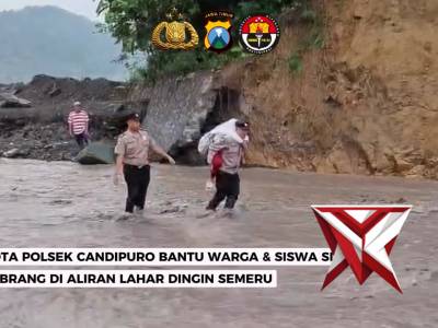 Anggota Polsek Candipuro bantu warga dan siswa SD menyebrang di aliran lahar dingin SemeruFeb 25, 2026 21:03 - Berita - 10 viewsLumajang-Kepedulian aparat kepolisian terhadap keselamatan warga kembali ditunjukkan oleh anggota Polsek Candipuro, Polres Lumajang. Seorang pelajar Sekolah Dasar terpaksa digendong polisi saat menyeberangi derasnya banjir lahar dingin Gunung Semeru di al... -