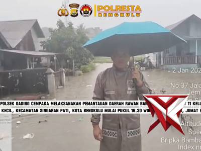 Polsek Gading Cempaka Pantau Banjir di Kelurahan Jembatan Kecil - PoliceTubeFeb 21, 2026 06:39 - Berita - 16 viewsPolsek Gading Cempaka Pantau Banjir di Kelurahan Jembatan Kecil Personel Polsek Gading Cempaka melaksanakan pemantauan daerah rawan banjir di RT 10 dan RT 11 Kelurahan Jembatan Kecil, Kecamatan Singaran Pati, Kota Bengkulu mulai pukul 16.30 WIB hingga se... -