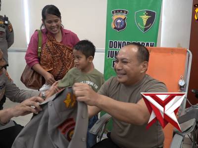 Bakti Kesehatan Donor Darah Dalam Rangka Jum'at Berkah Polda Riau - PoliceTubeFeb 03, 2026 17:46 - Berita - 30 viewsBapak Kapolda Riau turut langsung mendonorkan darahnya dalam kegiatan Bakti Kesehatan—sebuah bentuk nyata kepedulian dan keteladanan. Di tengah proses donor darah, suasana seketika makin hangat saat seorang anak kecil fasih berbahasa Inggris mendatangi b... -