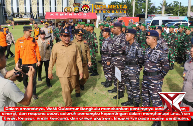 Polri–TNI–Pemprov Bengkulu Gelar Apel Siaga Darurat Bencana Hidrometeorologi 2025 Kota Bengkulu – P...Dec 26, 2025 15:31 - Berita - 12 viewsPolri–TNI–Pemprov Bengkulu Gelar Apel Siaga Darurat Bencana Hidrometeorologi 2025 Kota Bengkulu – Pemerintah Provinsi Bengkulu menggelar Apel Siaga Darurat Bencana Hidrometeorologi Tahun 2025 bertema “Bersama Hadapi Ancaman Hidrometeorologi, Siaga, Cepat... -