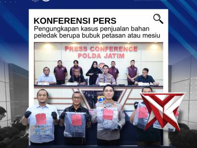 Polda Jatim Tegas Berantas Perdagangan Mesiu Ilegal di Platform DigitalMar 03, 2026 18:38 - Berita - 6 viewsPolda Jawa Timur mengungkap peredaran bubuk petasan atau mesiu ilegal yang dipasarkan melalui media sosial. Dua pemuda asal Sidoarjo ditangkap dengan barang bukti 1 kilogram mesiu siap edar. Keduanya terancam hukuman maksimal 15 tahun penjara. Selasa (3/3... -