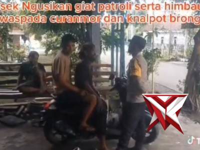 POLSEK NGUSIKAN HIMBAUAN KNALPOT BRONGMar 03, 2026 05:43 - Berita - 6 viewsAnggota Polsek Ngusikan laksanakan patroli dialogis himbau warga agar tidak menggunakan knalpot BRONG pada kendaraan terutama sepeda motor. -