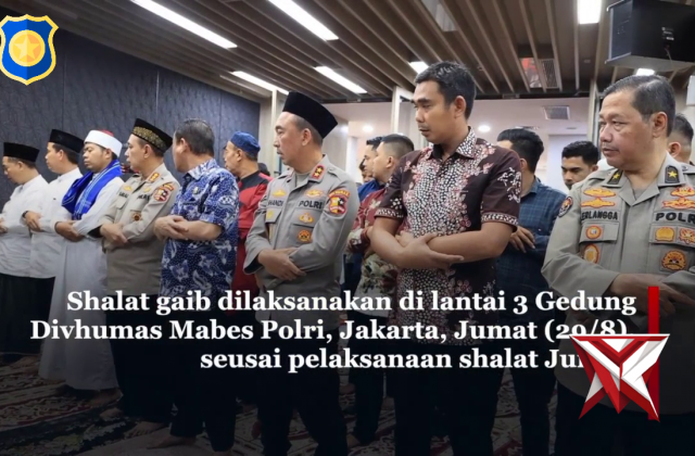 Divhumas Polri menggelar shalat gaib untuk mendoakan almarhum Afan KurniawanNov 10, 2025 03:20 - Berita - 36 viewsDivisi Humas (Divhumas) Polri menggelar shalat gaib untuk mendoakan almarhum Afan Kurniawan, pengemudi ojek online yang meninggal akibat dilindas kendaraan taktis (rantis) Brimob -