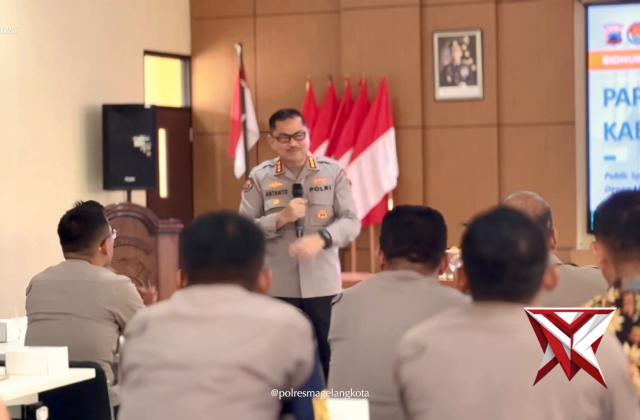 Polres Magelang Kota mengikuti Pelatihan KehumasanNov 16, 2025 08:55 - Berita - 31 viewsPolres Magelang Kota mengikuti Pelatihan Kehumasan oleh Kabidhumas Kombes Pol. Artanto dengan materi Public Speaking dan sosialisasi Policetube. -