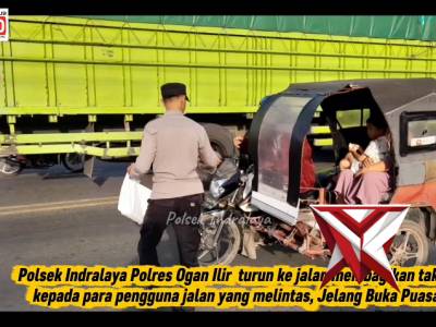 Polsek Indralaya Polres Ogan ilir berbagi takjil menjelang berbuka puasa. - PoliceTubeFeb 28, 2026 11:21 - Berita - 7 viewsPolsek Indralaya Polres Ogan ilir berbagi takjil menjelang berbuka puasa kepada pengguna jalan. -