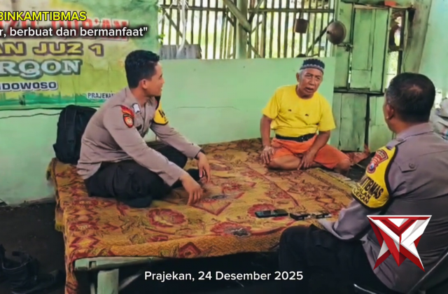 Sambang dan silaturahmi Bhabinkamtibmas untuk ciptakan situasi aman dalam Nataru 2025.Dec 26, 2025 15:20 - Berita - 12 viewsPolsek Prajekan melalui seluruh Bhabinkamtibmas melakukan langkah preemtif untuk menciptakan situasi aman dalam masa Perayaan Ibadah Natal 2025 dan Tahun Baru 2026. Ps. Kanit Binmas AIPTU EDI SUGIANTO, S.H. bersama Bhabinkamtibmas Desa Prajekan Lor BRIPK... -