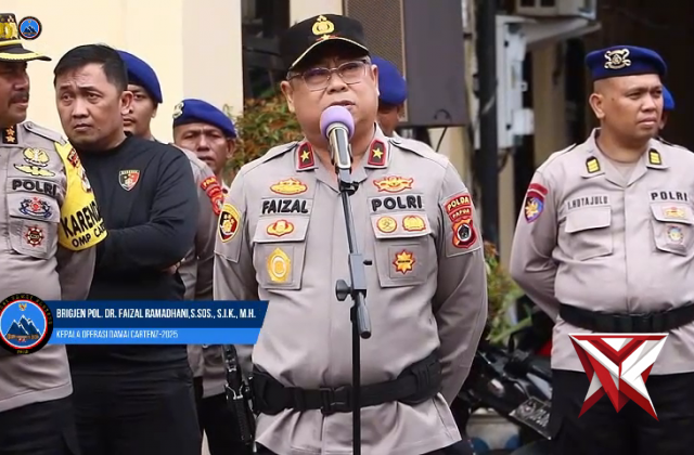Arahan Kaops Damai Cartenz-2025 kepada Jajaran Polda Papua dalam Situasi Kamtibmas Saat IniNov 16, 2025 10:35 - Berita - 24 viewsKaops Damai Cartenz-2025 Brigjen Pol. Dr. Faizal Ramadhani, S.Sos., S.I.K., M.H. selaku Wakapolda Papua memimpin apel kesiapsiagaan di Mako Polda Papua, Minggu (31/8). Dalam arahannya kepada para PJU dan jajaran personel Polda Papua, Brigjen Pol. Faizal m... -