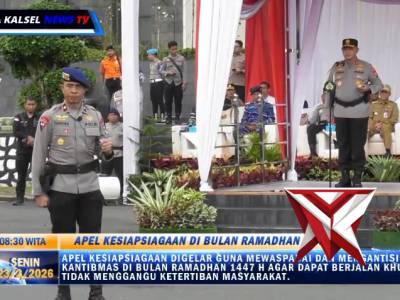 Polda Kalsel menggelar Apel Kesiapsiagaan dalam rangka menjaga Kamtibmas selama bulan suci ramadhan...Feb 24, 2026 18:31 - Berita - 7 viewsDihadiri oleh unsur Forkopimda Kalsel, Polda Kalimantan Selatan menggelar Apel Kesiapsiagaan dalam rangka menjaga Kamtibmas selama bulan suci ramadhan 1447 H / 2026 M, Diprovinsi Kalimantan Selatan, Senin 23/2/2026, Pukul 8.30 Wita, di Lapangan Apel Mapol... -