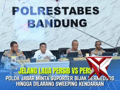 Polda Jabar Imbau Suporter Bijak Bermedsos dan Larang Aksi Sweeping Kendaraan - PoliceTubeFeb 17, 2026 00:01 - Berita - 22 viewsJelang Laga Persib vs Persija, Polda Jabar Imbau Suporter Bijak Bermedsos dan Larang Aksi Sweeping Kendaraan Jelang pertandingan akbar Persib Bandung melawan Persija Jakarta yang akan digelar pada Minggu, 11 Januari 2026 di Stadion Gelora Bandung Lautan... -