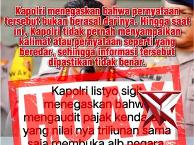 Klarifikasi Resmi Kapolri, Jenderal Polisi Dr. Listyo Sigit Prabowo Terkait Pernyataan Yang BeredarMar 02, 2026 02:06 - Berita - 8 viewsKlarifikasi Resmi Kapolri, Jenderal Polisi Dr. Listyo Sigit Prabowo Terkait Pernyataan Yang Beredar Klarifikasi resmi dari Kapolri Jenderal Polisi Dr. Listyo Sigit Prabowo: Pernyataan yang beredar di publik & media sosial bukan berasal dari beliau da... -