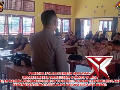 PERSONIL POLSEK LEMBAH SEULAWAH MELAKSANAKAN SOSIALISASI DAN SAWEU SIKULA DI SMAN 1 LEMBAH SEULAWAH...Feb 15, 2026 22:29 - Berita - 19 viewspersonil Polsek lembah Seulawah melaksanakan sosialisasi dan Saweu sikula dalam rangka program POLICE GO TO SCHOLL di SMAN 1 LEMBAH SEULAWAH kecamatan lembah Seulawah kabupaten Aceh besar -
