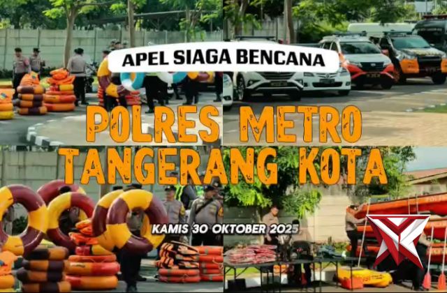 APEL SIAGA BENCANA POLRES METRO TANGERANG KOTANov 11, 2025 07:35 - Berita - 30 viewsPolres Metro Tangerang Kota menggelar Apel Siaga Bencana di halaman Gedung Presisi, Kamis (30/10/2025). Kegiatan dipimpin langsung oleh Kapolres Metro Tangerang Kota KOMBES POL Dr. Raden Muhammad Jauhari, S.H., S.I.K., M.Si., dan diikuti 345 personel gabu... -