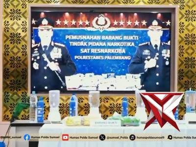Kapolda Sumsel Pimpin Pemusnahan Barang Bukti, Tegaskan Komitmen Berantas Penyalahgunanan narkotika...Feb 25, 2026 18:22 - Berita - 9 viewsPalembang - Komitmen pemberantasan peredaran dan penyalahgunaan narkotika di Sumatera Selatan terus digencarkan secara masif dan berkelanjutan. Polda Sumsel menyatakan perang total terhadap peredaran gelap narkoba dengan memusnahkan barang bukti hasil pen... -