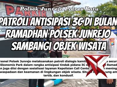 Patroli Antisipasi 3C di Bulan Ramadhan, Polsek Junrejo Sambangi Objek WisataMar 02, 2026 18:38 - Berita - 8 viewsPersonel Polsek Junrejo melaksanakan patroli dialogis kamtibmas bersama security Batu Ekonomis Park dalam rangka antisipasi tindak pidana 3C selama bulan Ramadhan. Kegiatan juga diisi dengan sosialisasi layanan Kepolisian Call Center 110 guna meningkatkan... -