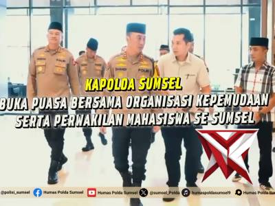 Kapolda Sumsel Buka Puasa Bersama OKP dan Mahasiswa, Tekankan Kemitraan Strategis Jaga Kamtibmas - P...Feb 28, 2026 01:22 - Berita - 7 views*Kapolda Sumsel Buka Puasa Bersama OKP dan Mahasiswa, Tekankan Kemitraan Strategis Jaga Kamtibmas* Palembang — Kapolda Sumatera Selatan, Irjen Pol Sandi Nugroho menggelar buka puasa bersama organisasi kepemudaan (OKP), Cipayung Plus, serta perwakilan mah... -