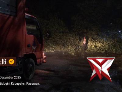 Polsek kratonMar 09, 2026 23:16 - Berita - 3 viewsPersonel polsek kraton melaksanakan patroli pengaturan jalur yang diakibatkan pohon tumbang -