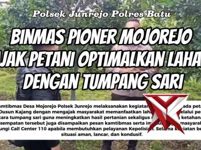 Binmas Pioner Mojorejo, Ajak Petani Optimalkan Lahan dengan Tumpang Sari - PoliceTubeFeb 21, 2026 20:09 - Berita - 12 viewsBhabinkamtibmas Desa Mojorejo Polsek Junrejo melaksanakan kegiatan sambang kepada petani kebun jeruk di Dusun Kajang dengan mengajak masyarakat memanfaatkan lahan kosong melalui penanaman jagung secara tumpang sari guna meningkatkan hasil pertanian sekali... -