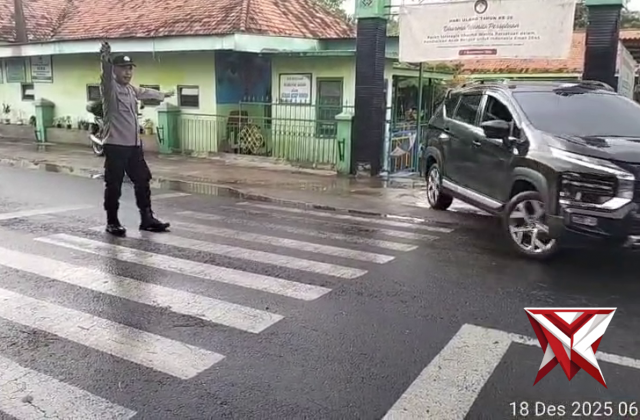 Pengaturan pagiDec 20, 2025 15:05 - Berita - 13 viewsAnggota polsek galis polres pamekasan melaksanakan giat pengaturan arus lalu lintas di depan sekolah MIN konang guna mengantisipasi kerawanan kamtibmas dan lakalantas