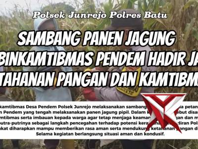 Sambang Panen Jagung, Bhabinkamtibmas Pendem Hadir Jaga Ketahanan Pangan dan Kamtibmas - PoliceTubeFeb 22, 2026 05:52 - Berita - 10 viewsBhabinkamtibmas Desa Pendem Polsek Junrejo melaksanakan sambang dialogis kepada petani jagung di Dusun Pendem yang tengah melaksanakan panen jagung pipil. Dalam kegiatan tersebut disampaikan pesan kamtibmas serta imbauan kepada warga agar tetap menjaga ke... -