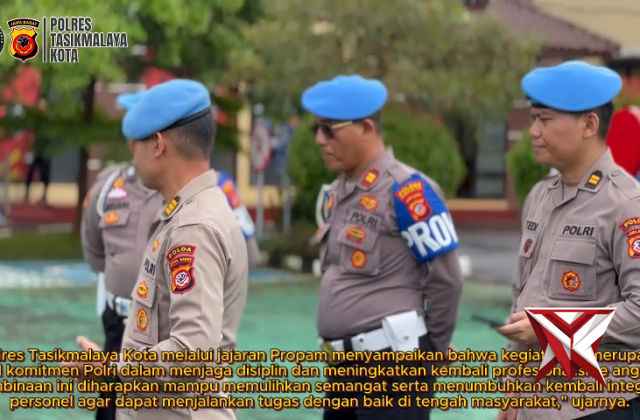 Polres Tasikmalaya Kota Gelar Monitoring Gabtiblin Rehab untuk Pemulihan Profesi PersonelNov 16, 2025 11:20 - Berita - 31 viewsPolres Tasikmalaya Kota melaksanakan kegiatan Gabungan Penegakan Ketertiban dan Disiplin (Gabtiblin) Rehab yang dipusatkan di Lapangan Mako Polres Tasikmalaya Kota, Selasa (16/09/2025). Kegiatan ini merupakan bagian dari program Pembinaan dan Pemulihan Pr... -