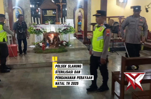 Polsek Slahung Sterilisasi Dan Pengamanan Perayaan Natal Th 2025Dec 26, 2025 15:18 - Berita - 10 viewsPolsek Slahung Di Pimpin Langsung Kapolsek Slahung AKP PITOYO,S.Sos.,M.H Melaksanakan Giat Sterilisasi Dan Pengamanan Perayaan Natal Tahun 2025. Adapun Tempat Lokasi Di Greja Ratu Damai Dkh Tengger Desa Slahung Kecamatan Slahung Kab Ponorogo. -