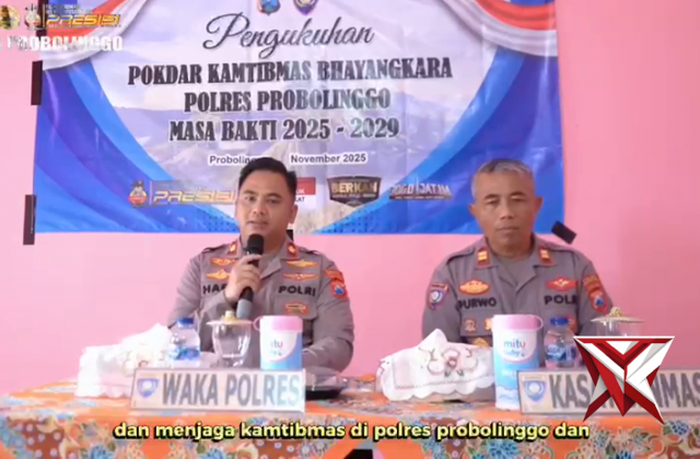 Pengukuhan Pokdar Kamtibmas Polres probolinggoNov 14, 2025 08:00 - Berita - 30 viewsPolres Probolinggo melaksanakan kegiatan Pengukuhan Pokdar Kamtibmas Bhayangkara. Kegiatan ini merupakan langkah nyata dalam memperkuat kemitraan antara Polri dan masyarakat guna mewujudkan situasi Kamtibmas yang aman dan kondusif di wilayah hukum Polres... -