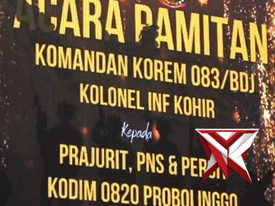 Penyambutan Kunker Danrem 083/BDJ ke Kodim 0820 ProbolinggoFeb 24, 2026 02:15 - Berita - 13 viewsPenyambutan Kunker Danrem 083/BDJ ke Kodim 0820 Probolinggo -