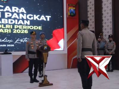 Upacara Kenaikan Pangkat Pengabdian Periode 1 Februari 2026 - PoliceTubeFeb 15, 2026 23:25 - Berita - 15 viewsKEDIRI KOTA – Suasana khidmat menyelimuti Gedung Rupatama Wicaksana Laghawa Polres Kediri Kota saat dilaksanakan Upacara Kenaikan Pangkat Pengabdian Periode 1 Februari 2026, Jumat (13/2/2026) pukul 14.00 WIB. Upacara dipimpin langsung oleh Kapolres Kedir... -