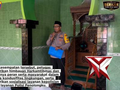 Satbinmas Polres Probolinggo melaksakan silaturahmi dengan jamaah Sholat Jum’at Masjid Nurul Amal -...Feb 03, 2026 06:44 - Berita - 39 viewsAipda Davit Anggun Prayudo, S.H. (Satbinmas Polres Probolinggo) melaksakan silaturahmi dengan jamaah Sholat Jum’at Masjid Nurul Amal Dusun Wonosalam Desa Kalisalam Kec. Dringu Kab. Probolinggo. Kegiatan tersebut merupakan implementasi dari program unggul... -