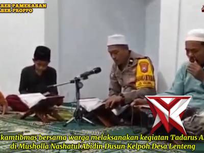 Bhabinkamtibmas melaksanakan Tadarus Alqur'an bersama wargaMar 02, 2026 05:25 - Berita - 7 viewsBhabinkamtibmas melaksanakan Tadarus Alqur'an bersama warga di Masjid Proppo -