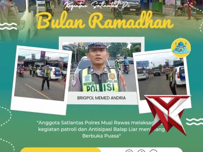 Kegiatan Satlantas Polres Musi Rawas di Bulan Ramadhan 1447 HFeb 21, 2026 18:39 - Berita - 11 viewsKegiatan Satlantas Polres Musi Rawas di Bulan Ramadhan 1447 H Anggota Satlantas Polres Musi Rawas melaksanakan kegiatan patroli dan Antisipasi Balap Liar menjelang waktu berbuka puasa. -